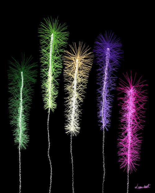 Serie van werken gemaakt met Processing gemaakt op een iPad.